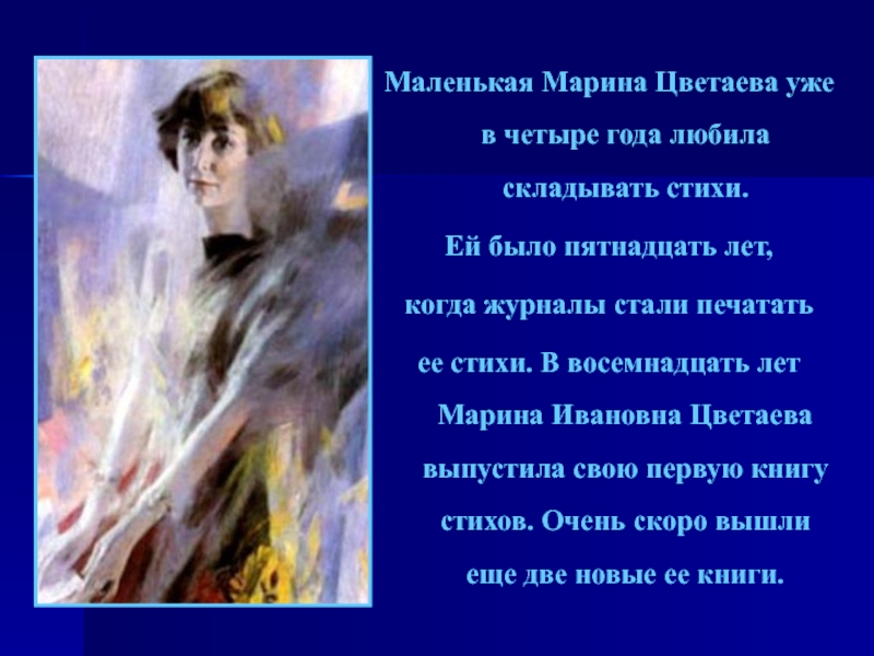 Слайд 14Маленькая Марина Цветаева уже в четыре года любила складывать стихи.