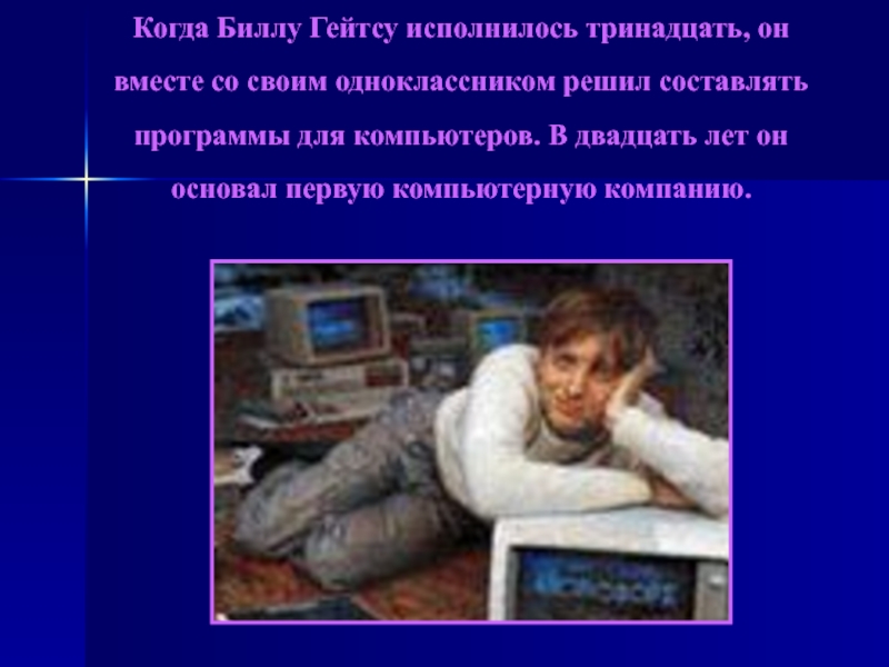 Слайд 43Когда Биллу Гейтсу исполнилось тринадцать, он вместе со своим одноклассником решил