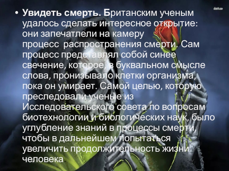 Слайд 4Увидеть смерть. Британским ученым удалось сделать интересное открытие: они запечатлели на