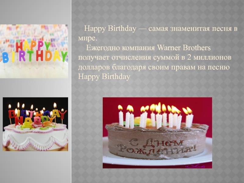 Ежегодно компания Warner Brothers получает отчисления суммой в 2 миллионов долларов благодаря своим правам на песню Happy Birthday