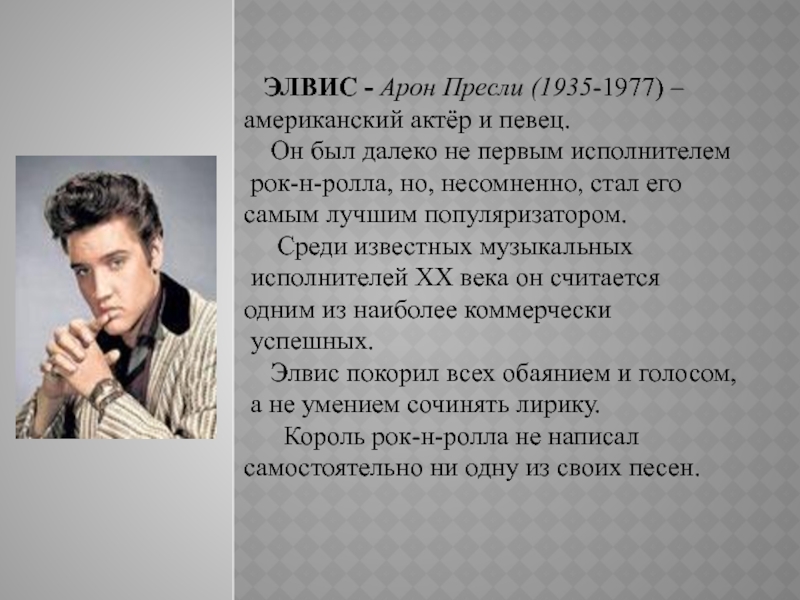 Слайд 12 ЭЛВИС - Арон Пресли (1935-1977) –