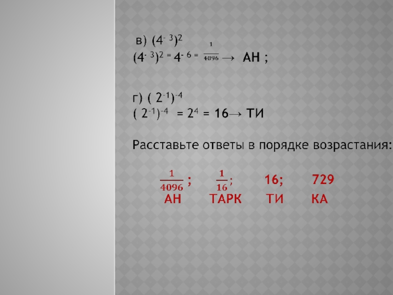 Слайд 33Расставьте числа ответа в порядке убывания: -