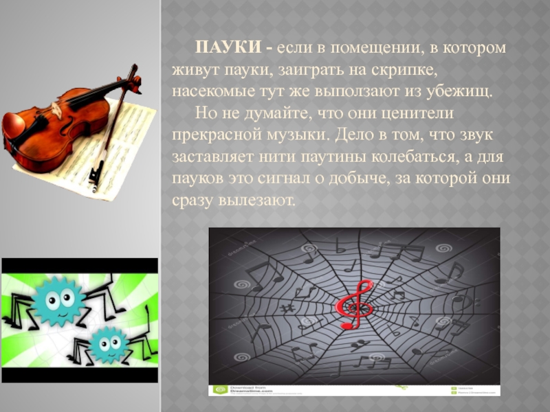 пауки, заиграть на скрипке, насекомые тут же выползают из убежищ.