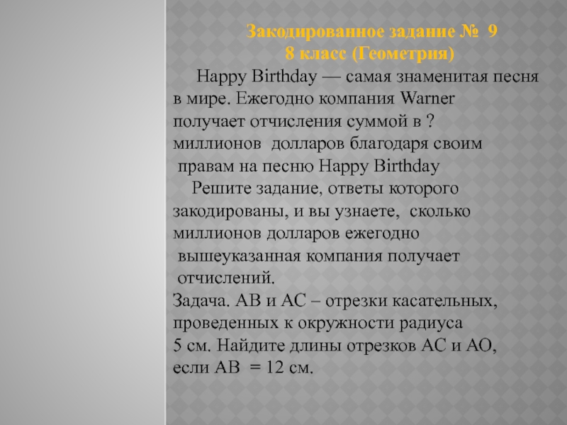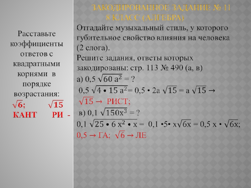 Слайд 5ЗАКОДИРОВАННОЕ ЗАДАНИЕ № 2