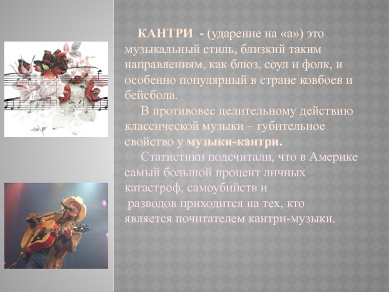 Слайд 30 КАНТРИ - (ударение на «а») это