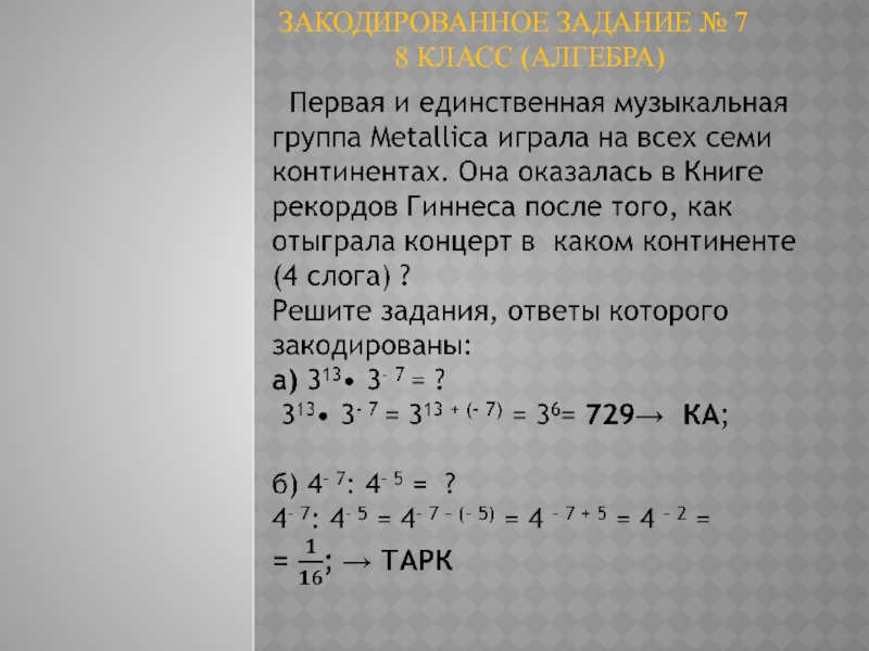 Слайд 7ЗАКОДИРОВАННОЕ ЗАДАНИЕ № 3