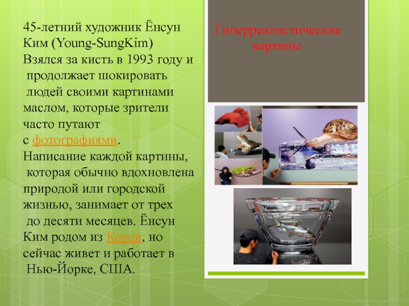 до десяти месяцев. Ёнсун Ким родом из Кореи, но сейчас живет и работает в