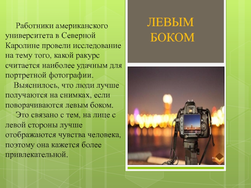 Выяснилось, что люди лучше получаются на снимках, если поворачиваются левым боком.