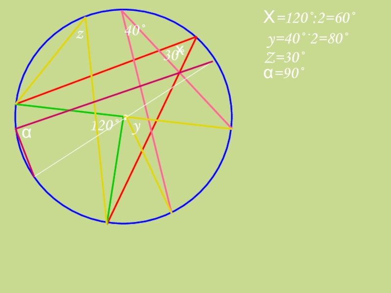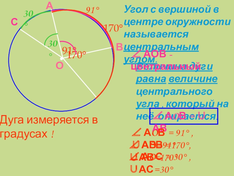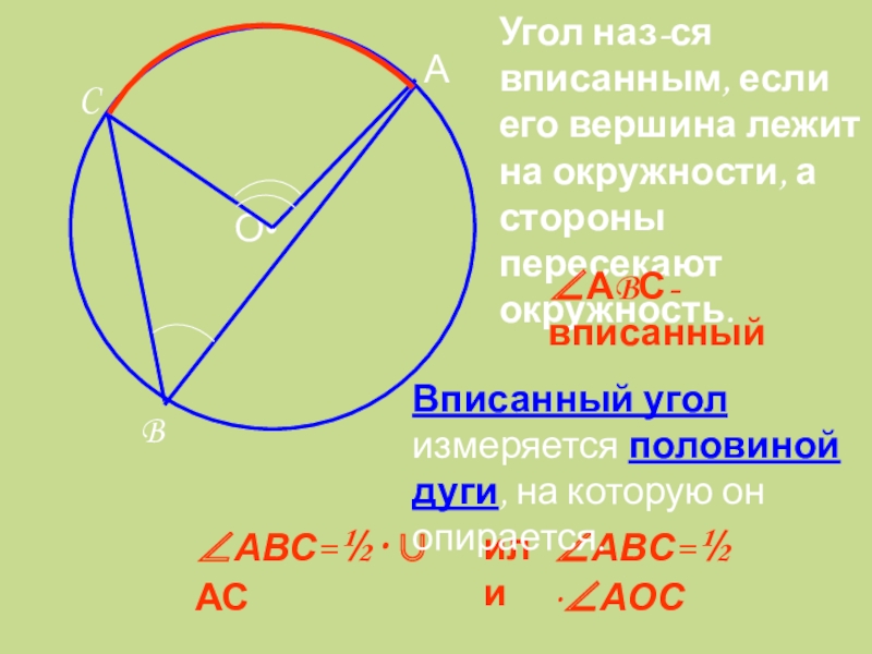 Вписанный угол измеряется половиной дуги, на которую он опирается.