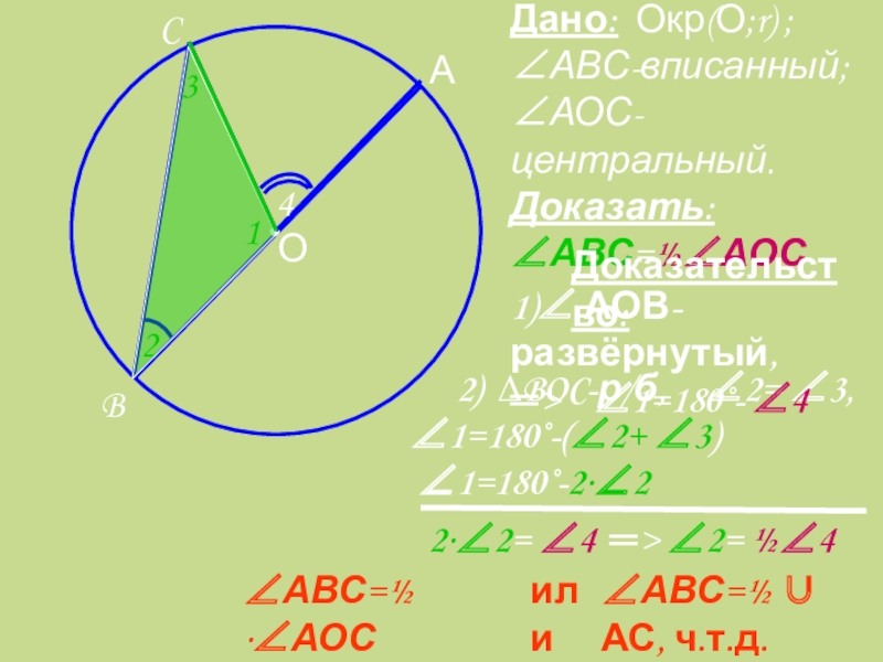 1) АОВ-развёрнутый, ═> 1=180˚- 4