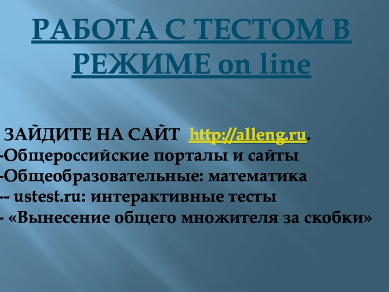 Это сайт презентаций, где можно хранить и обмениваться своими презентациями, докладами, проектами, шаблонами в формате PowerPoint с другими пользователями. Мы помогаем школьникам, студентам, учителям, преподавателям хранить и обмениваться учебными материалами.
