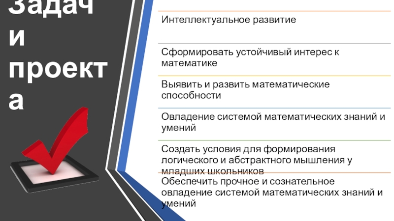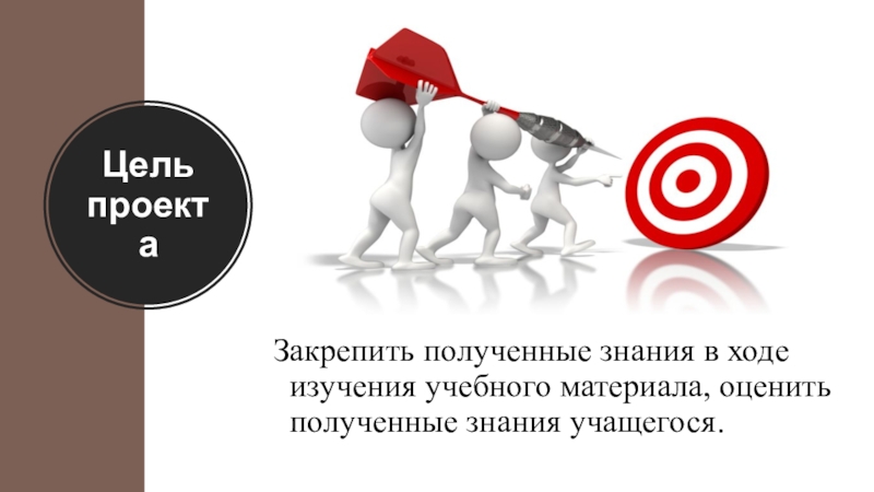 Цель проектаЗакрепить полученные знания в ходе изучения учебного материала, оценить полученные знания учащегося.