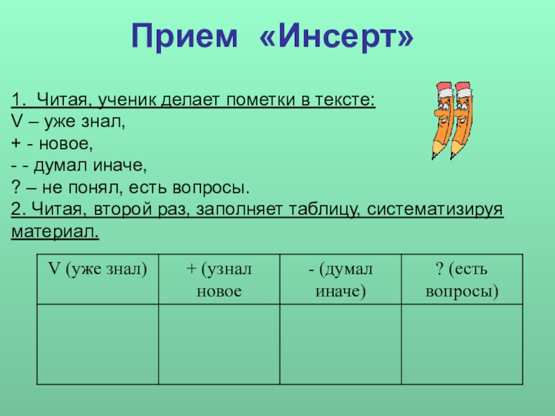 2. Читая, второй раз, заполняет таблицу, систематизируя