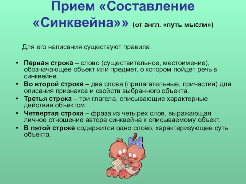 Слайд 14Прием «Составление «Синквейна»» (от англ. «путь мысли»)