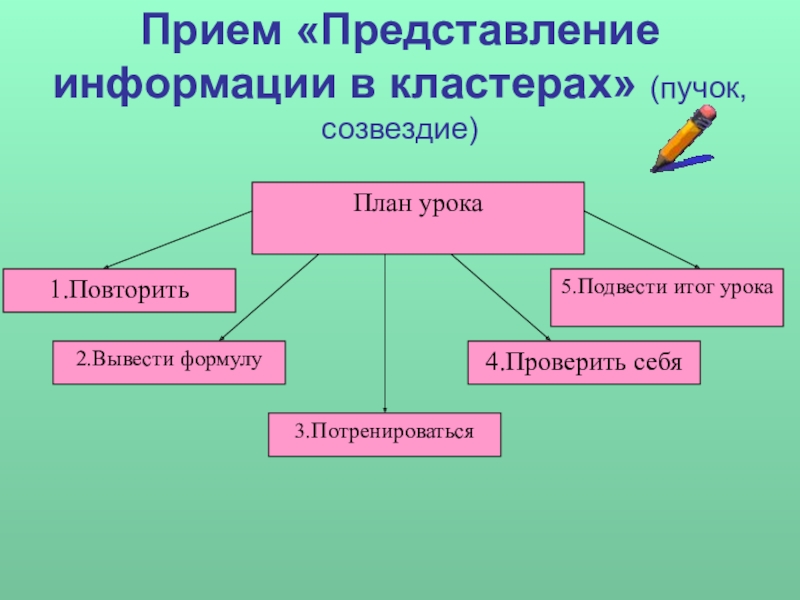 Слайд 11Прием «Представление информации в кластерах» (пучок, созвездие)