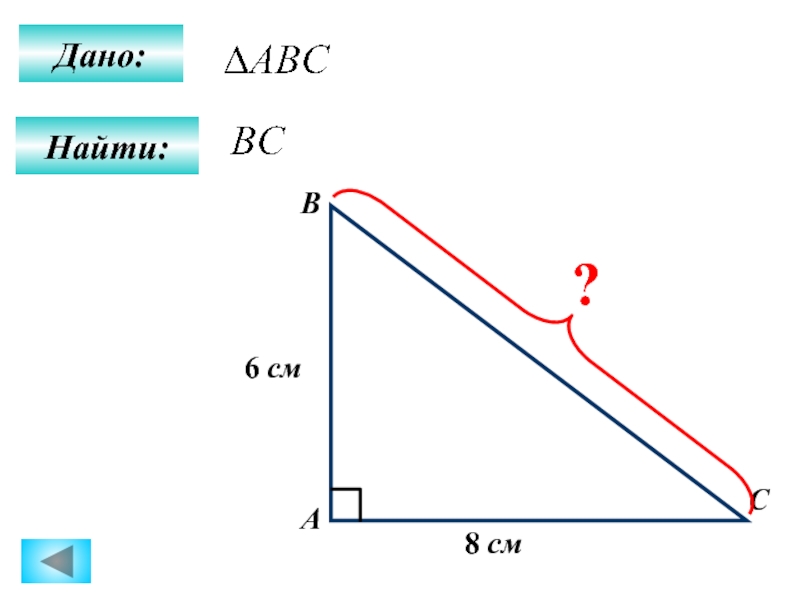 Найти:СВАДано:8 см6 см?