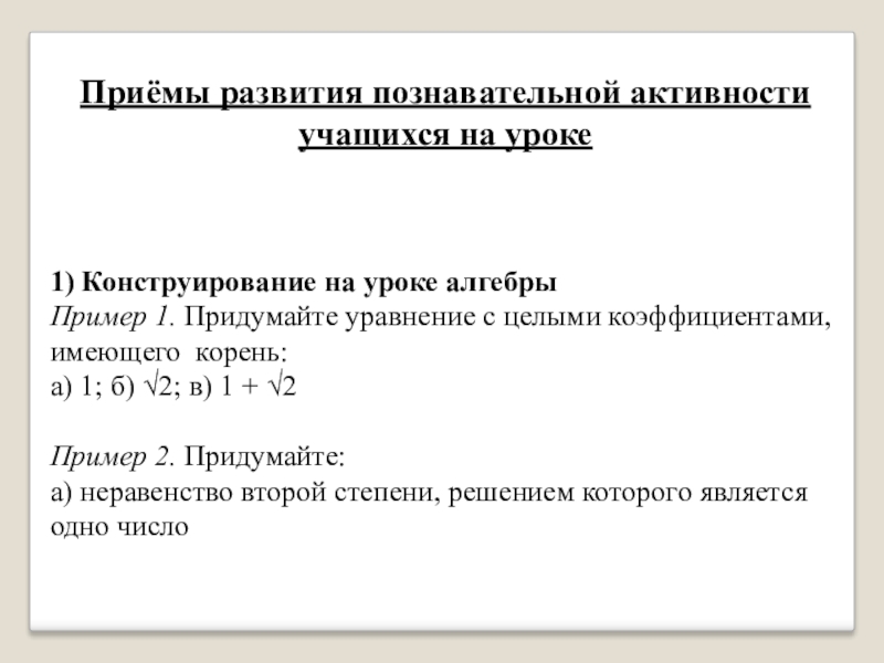 Пример 1. Придумайте уравнение с целыми коэффициентами, имеющего корень: