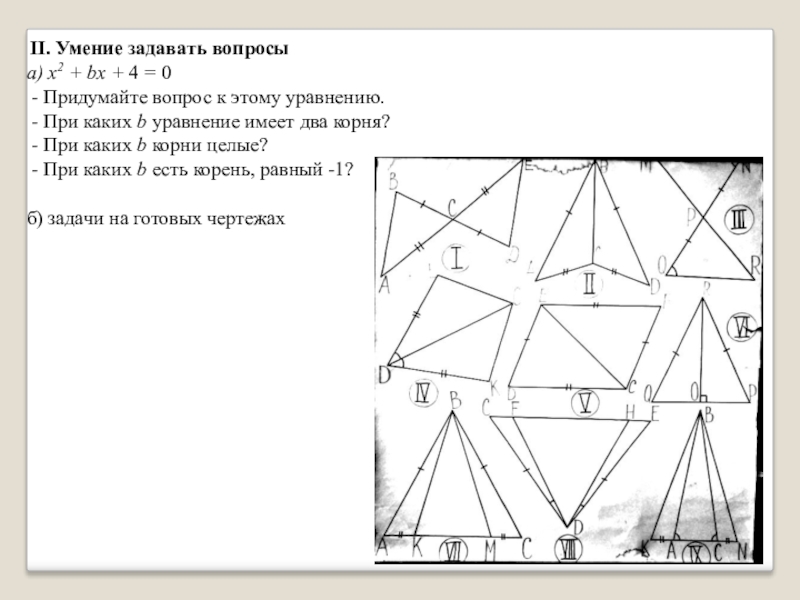 б) Дано 5 спичек. Сложите из них 2 равносторонних треугольника. А теперь сложите из 6 спичек 4 равносторонних треугольника.