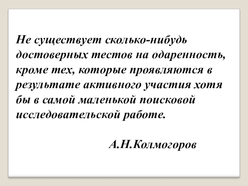 Слайд 2Не существует сколько-нибудь достоверных тестов на одаренность,