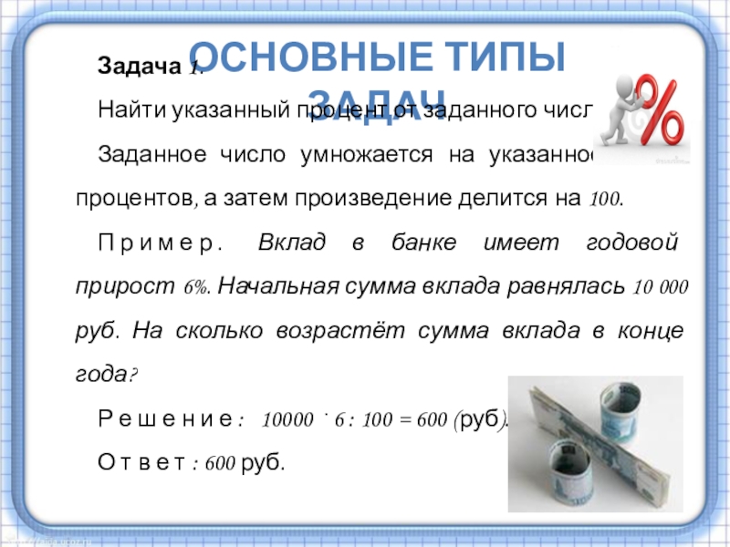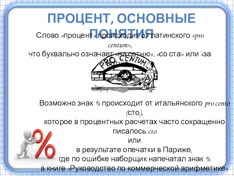Слайд 8ПРОЦЕНТ, ОСНОВНЫЕ ПОНЯТИЯ