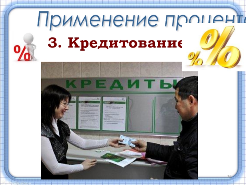 время под процентами понималось исключительно прибыль или убыток на каждые 100 рублей. Проценты применялись только в торговых и денежных сделках. Затем область их применения расширилась.