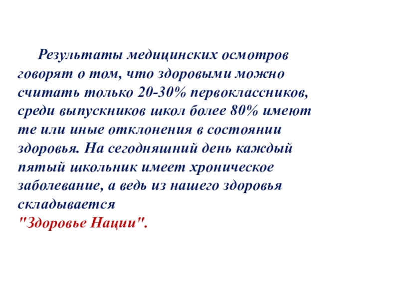 Слайд 43 Результаты медицинских осмотров говорят о том, что здоровыми можно считать только