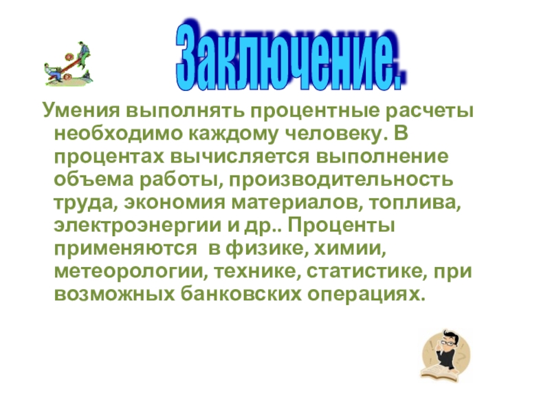 Слайд 46 Умения выполнять процентные расчеты необходимо каждому человеку. В процентах вычисляется