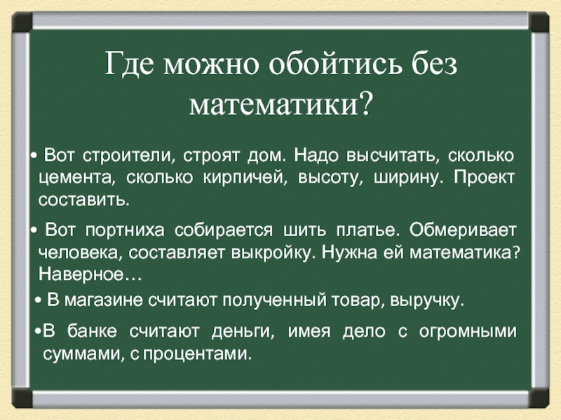 Вот портниха собирается шить платье. Обмеривает человека, составляет выкройку. Нужна ей математика? Наверное…