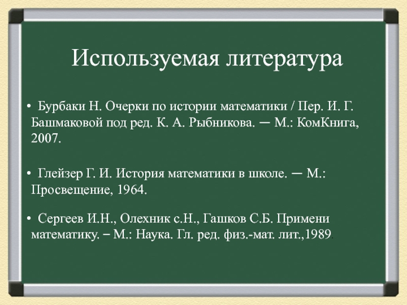Глейзер Г. И. История математики в школе. — М.: Просвещение, 1964.