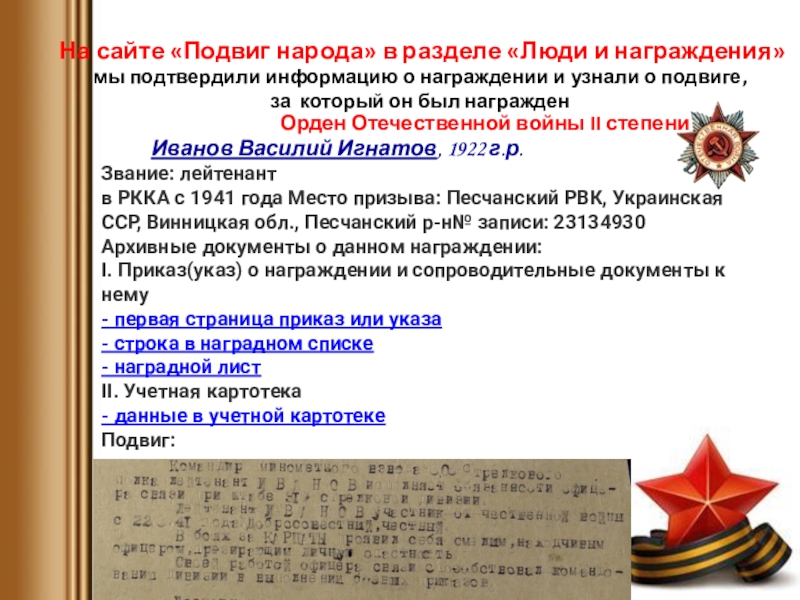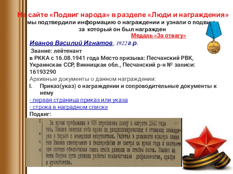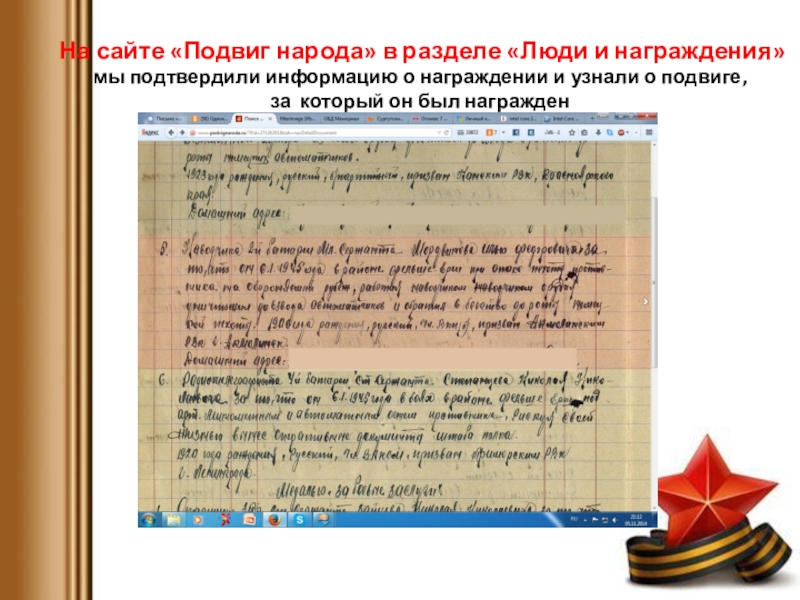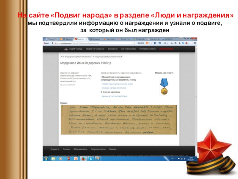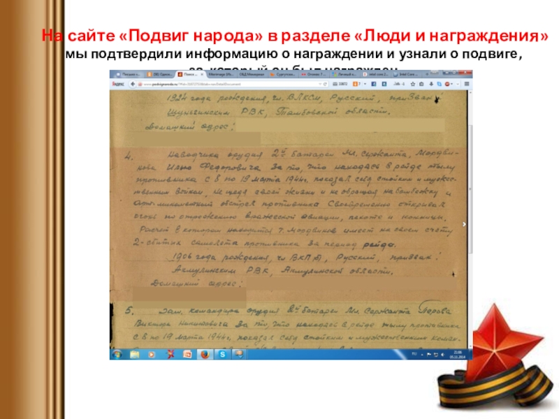 Слайд 22 На сайте «Подвиг народа» в разделе «Люди и награждения»