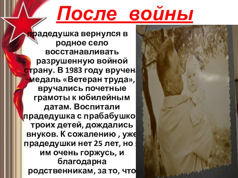 прадедушка вернулся в родное село восстанавливать разрушенную войной страну.