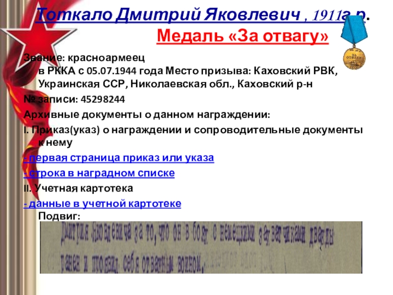 Слайд 55Тоткало Дмитрий Яковлевич , 1911г.р.