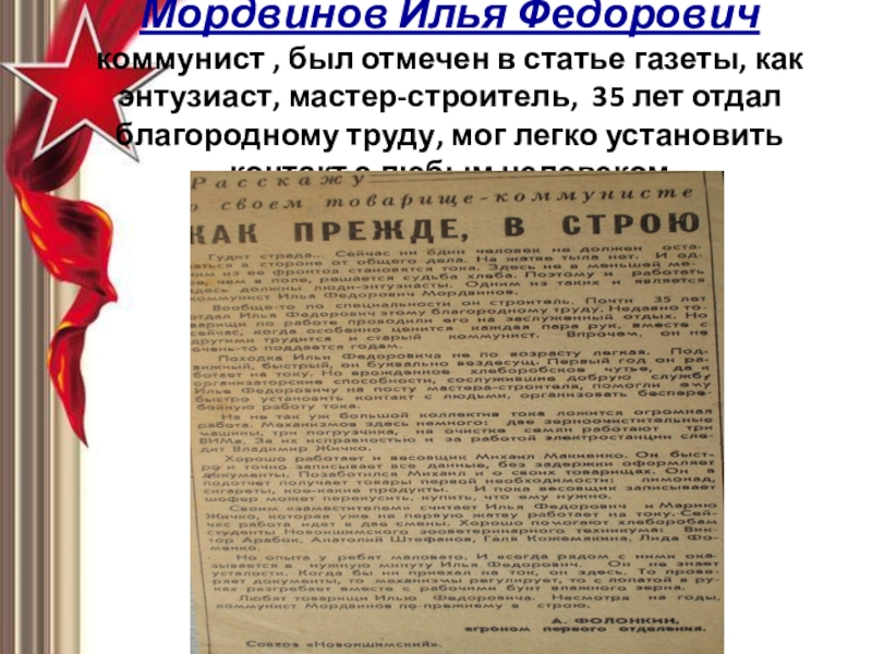 коммунист , был отмечен в статье газеты, как энтузиаст,