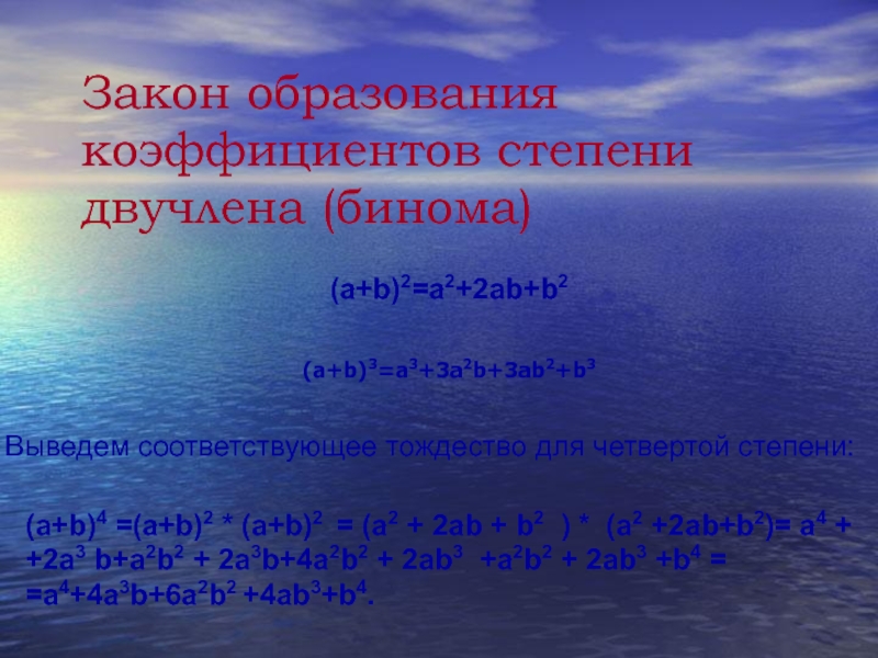 Слайд 5Закон образования коэффициентов степени двучлена (бинома)