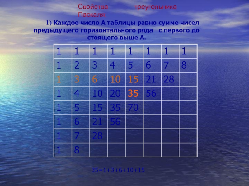 Свойства треугольника Паскаля: