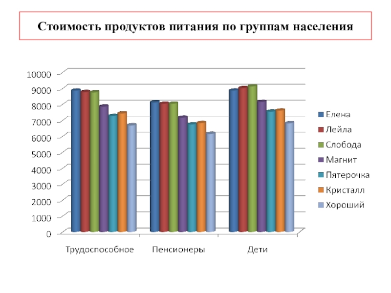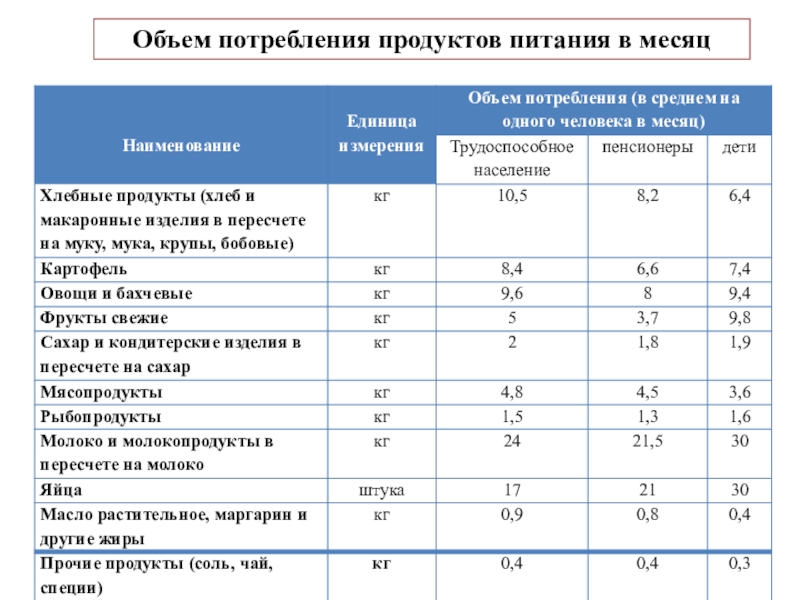 2) определить стоимость необходимых продуктов питания в месяц на человека;