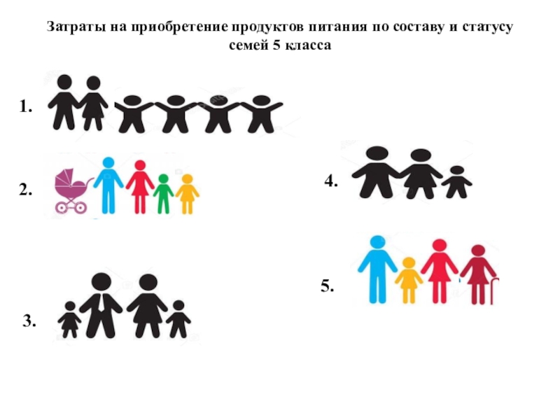 4) рассчитать стоимость продуктов питания по составу и статусу семьи;