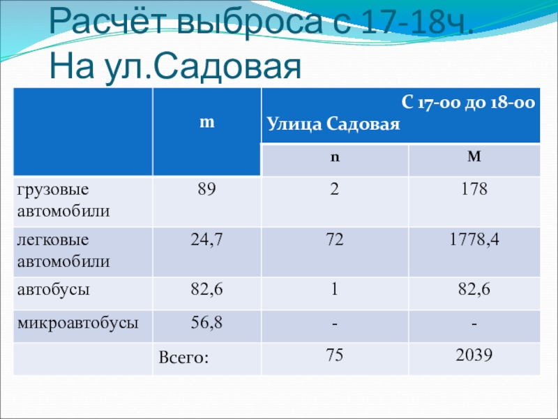 Слайд 12Расчёт выброса с 17-18ч. На ул.Садовая