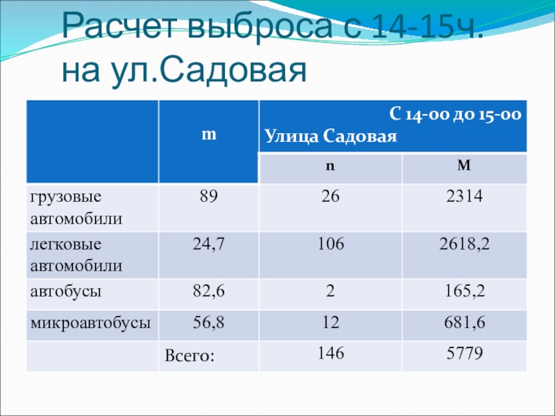 Слайд 11Расчет выброса с 14-15ч. на ул.Садовая
