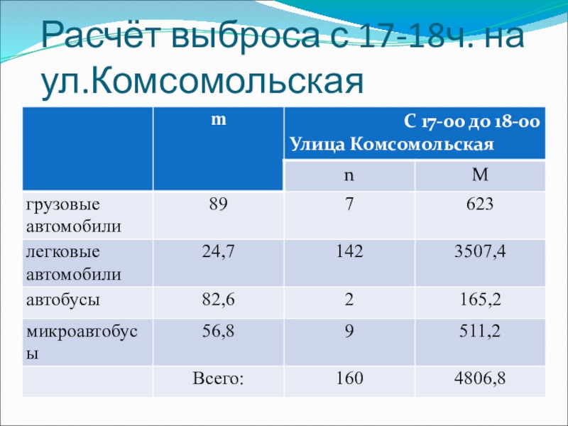 Слайд 14Расчёт выброса с 17-18ч. на ул.Комсомольская