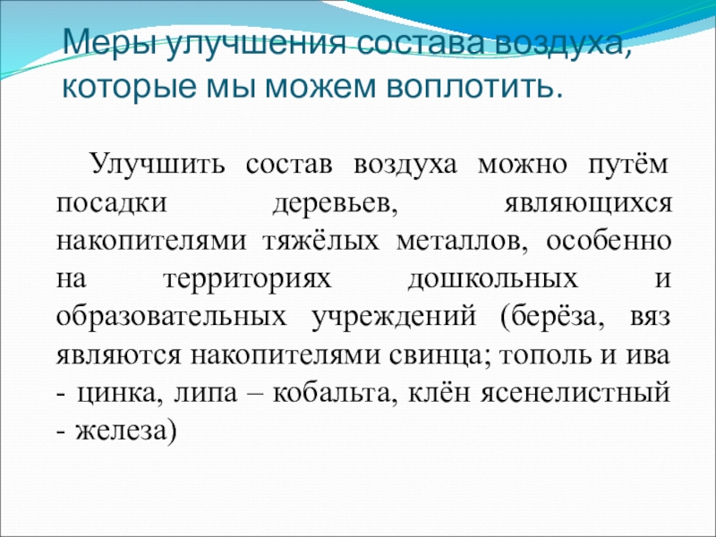Слайд 28Меры улучшения состава воздуха, которые мы можем воплотить.