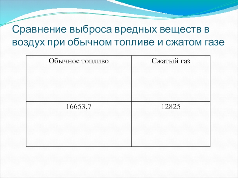 Слайд 22Сравнение выброса вредных веществ в воздух при обычном топливе и сжатом