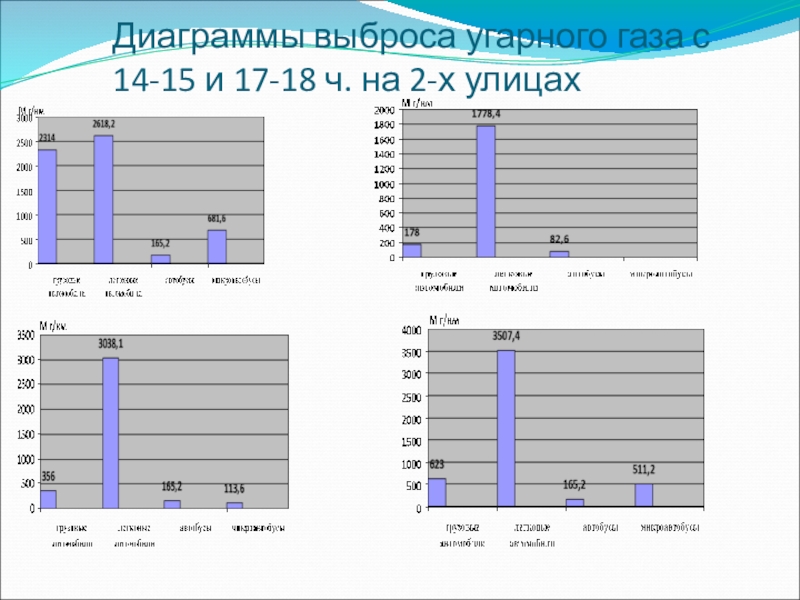 Слайд 19Диаграммы выброса угарного газа с 14-15 и 17-18 ч. на 2-х