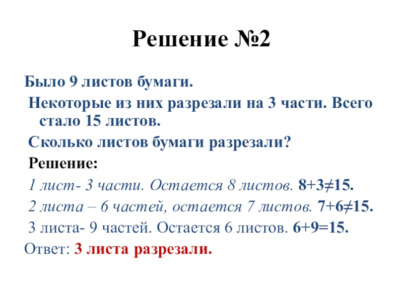 2 листа – 6 частей, остается 7 листов. 7+6≠15.