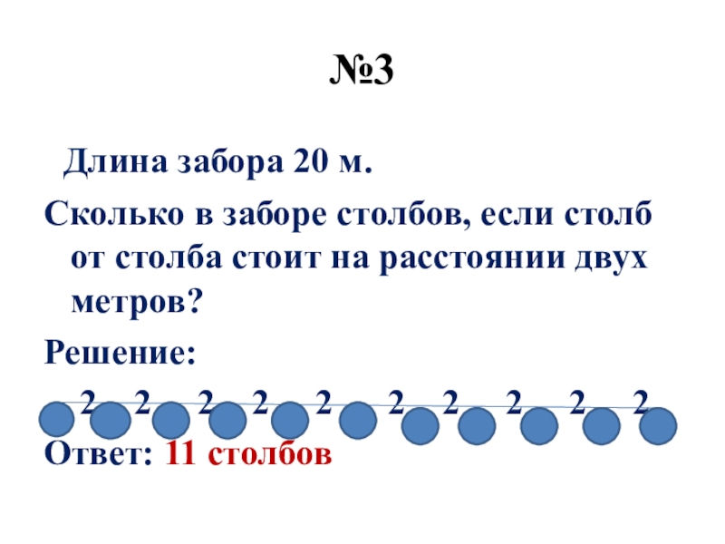 в заборе столбов, если столб от столба стоит на расстоянии двух метров?