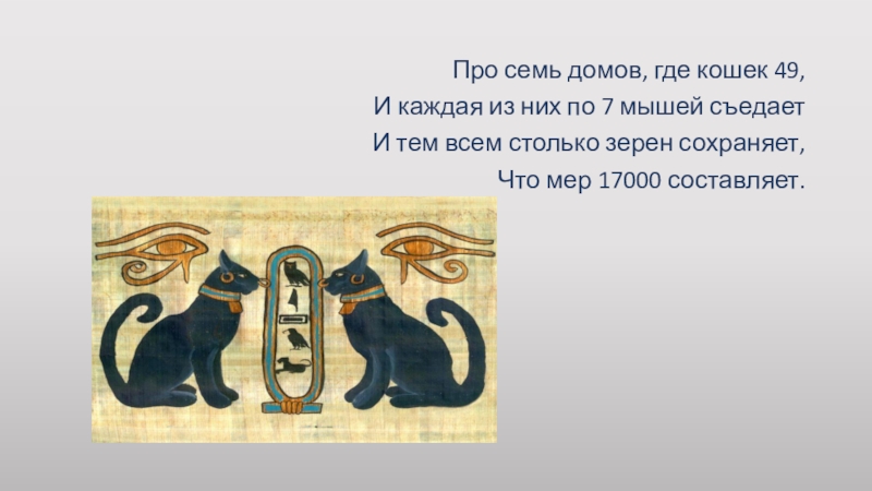 Про семь домов, где кошек 49,И каждая из них по 7 мышей съедаетИ тем всем столько зерен