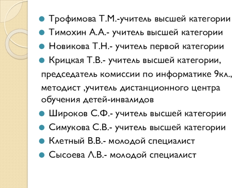 Слайд 2Трофимова Т.М.-учитель высшей категории