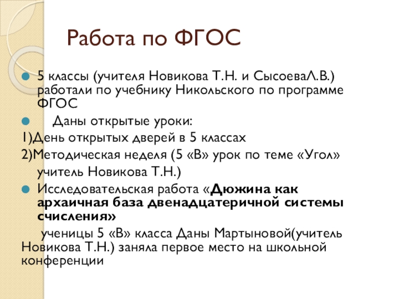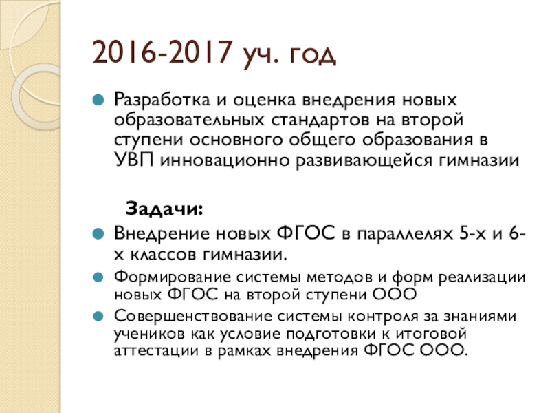 Внедрение новых ФГОС в параллелях 5-х и 6-х классов гимназии.