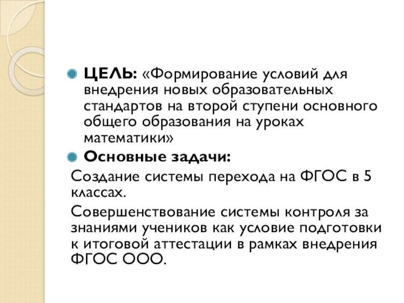Слайд 3ЦЕЛЬ: «Формирование условий для внедрения новых образовательных стандартов на второй ступени