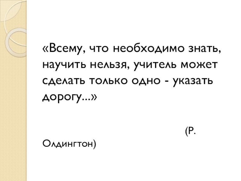 Слайд 4«Всему, что необходимо знать, научить нельзя, учитель может сделать только одно